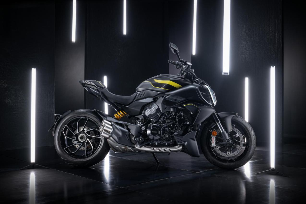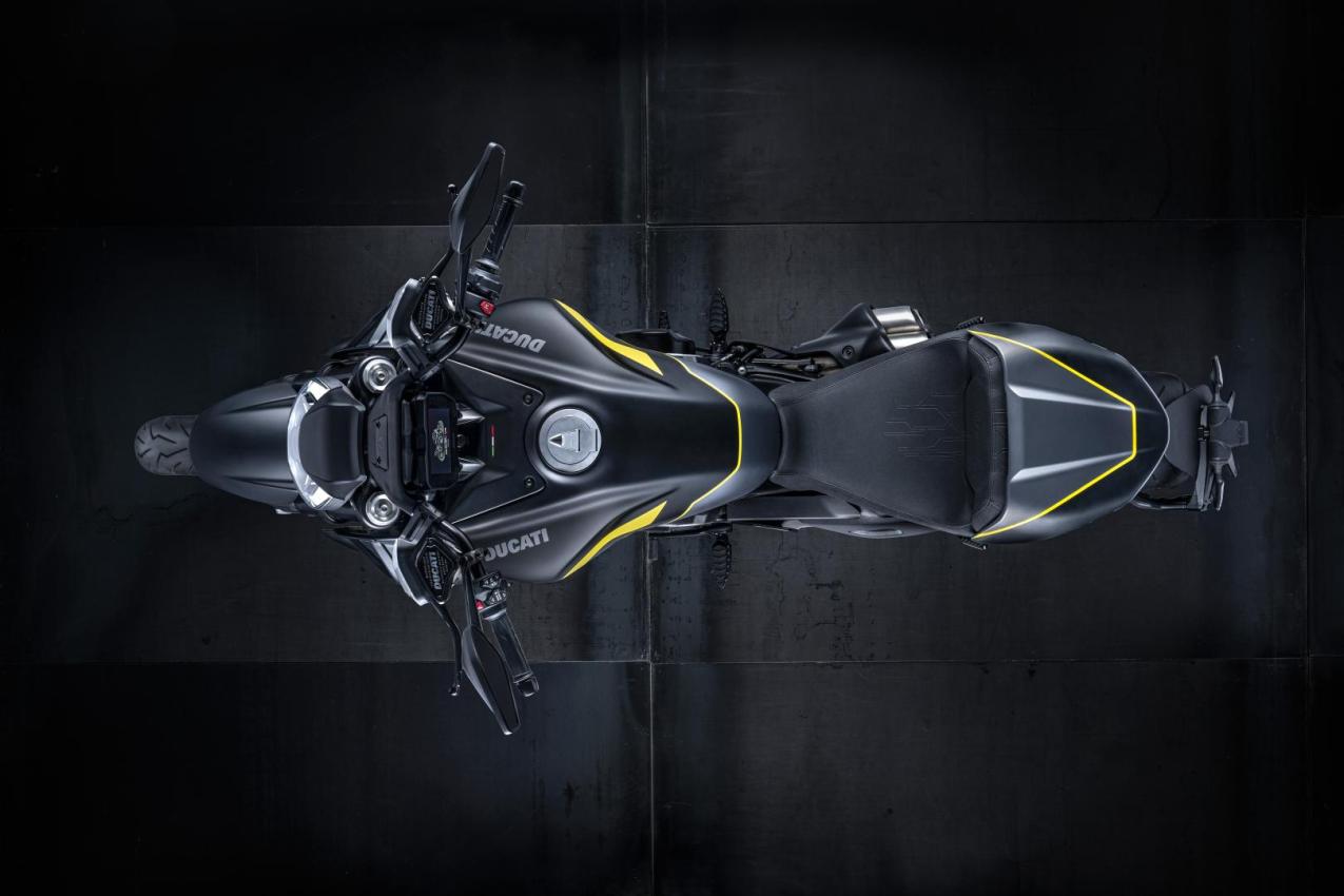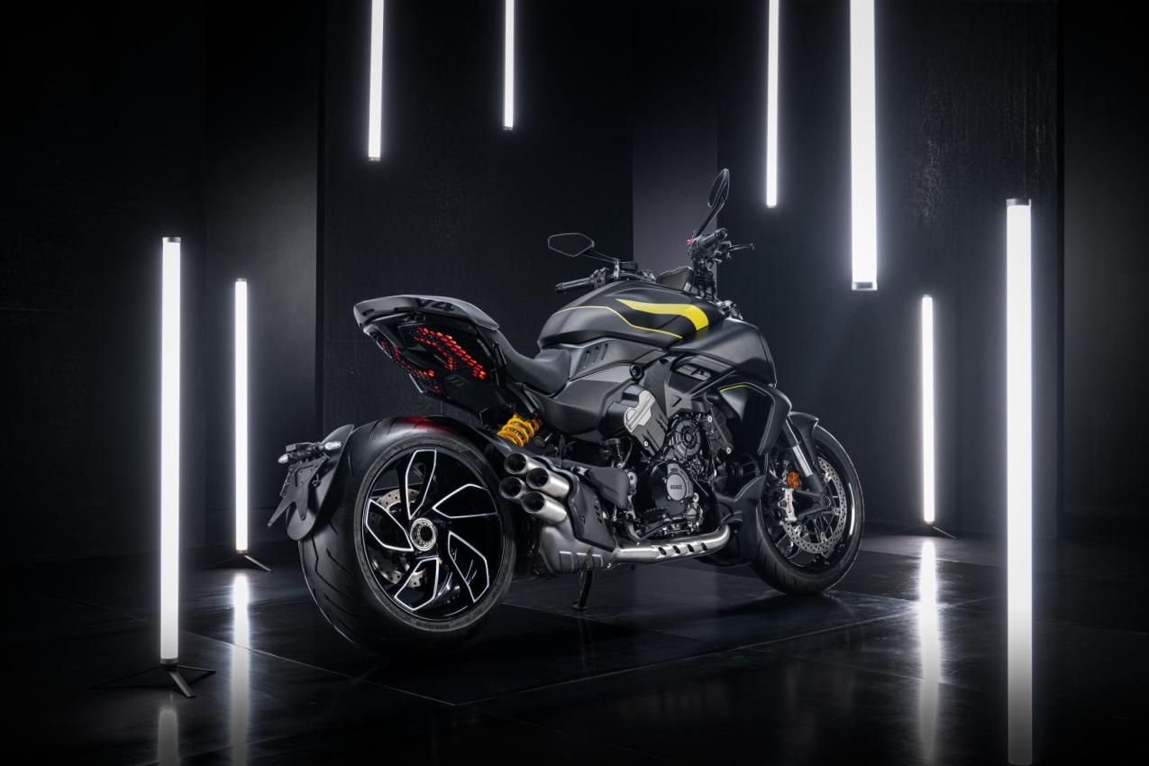 Die Diavel V4 ist muskulös, sportlich, extrovertiert und elegant zugleich. Sie ist in der Lage, in jeder Situation die Aufmerksamkeit auf sich zu ziehen und verbindet auf den ersten Blick weit entfernte technische, dynamische und stilistische Merkmale von sportlichen Naked-Bikes und Muscle-Cruisern. Die berauschenden Leistungen des V4 Granturismo Motors verbinden sich mit einer überraschenden Agilität und Dynamik. Der Fahrer entscheidet, ob das Ziel sportlich oder entspannt erreicht werden soll. Dank der drei Riding Modes lässt sich der Charakter der Diavel blitzschnell umstellen. Untermalt vom ausdrucksstarken MotoGP-Sound des Motors bleibt die Diavel V4 nicht unbemerkt. Optisch überzeugt sie mit ihrem breiten 240er-Hinterreifen, dem auffälligen LED-Scheinwerfer mit Tagfahrlicht und der spektakulären LED-Matrix am Heck. Die Kombination aus Technik, Charakter und Stil macht die Diavel V4 zum Protagonist in jeder Situation. Sie ist ein Motorrad für diejenigen, die niemals unbemerkt bleiben möchten.